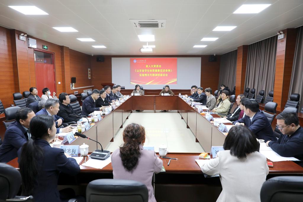 省人大常委会专题调研组成员,泰安市人大常委会、泰安市教育局等相关单位负责人参加调研。泰安市教育局主要负责同志就泰安市《山东省学生体质健康促进条例》实施情况进行了汇报。座谈会由泰安市人大常委会副主任、党组副书记辛海明主持。(通讯员:王新亮 摄影:任卫兵 责编:徐展)