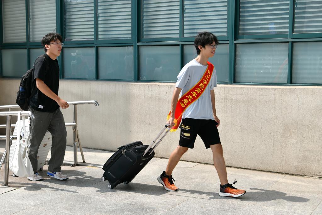 新生在志愿者引导下前往报到点