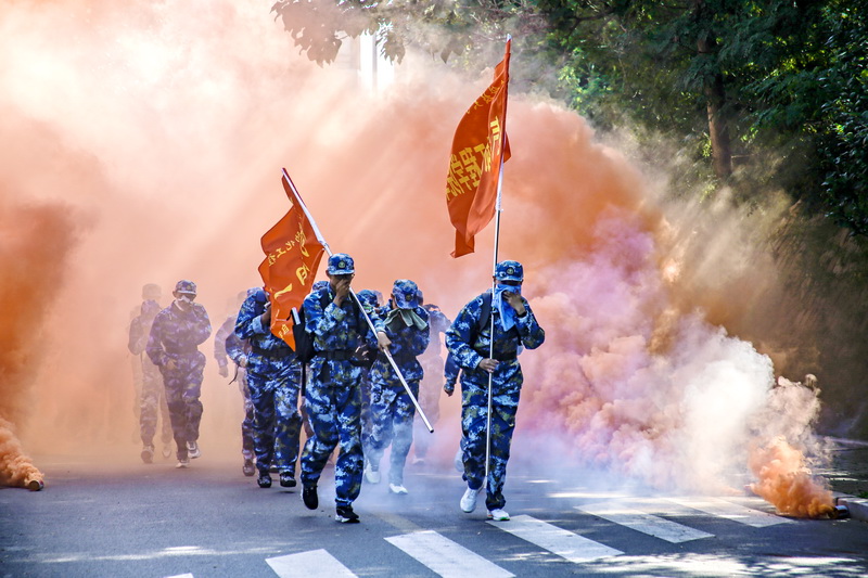 此次拉练全程约7公里,行军1个多小时,模拟真实战场,途中设置穿越染毒地带、穿越障碍地带、躲避敌机来袭、发现核闪光、50米急行军等关卡。行军拉练过程中,新生们相互帮扶、鼓励,大家虽然疲惫,脸上也流下了滴滴汗珠,但在师长的带领、教官的鼓励、同学的帮助,还有相互之间一声声热情的“加油”中,参训新生自觉接受磨炼和检验,以顽强的意志和团结协作的精神,出色地完成了全部拉练项目。