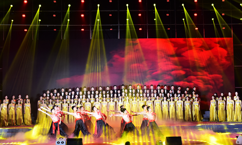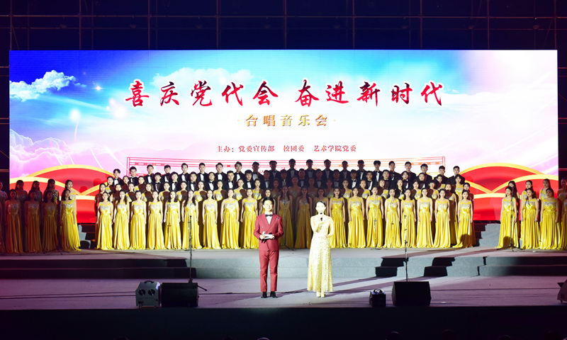 校党委常委罗公利、姚庆国、尹华、曾庆良、高建广、张英杰、李克周、陈涛及学校第三届党代会部分代表和师生党员代表共计1300余人集体观看了合唱演出。