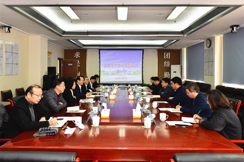 唐洲雁代表山东师范大学对战略合作协议的签署表示热烈祝贺,表示两校合作是强强联合、优势互补,希望两校以此次战略协议的签署为契机,秉承“优势互补、资源共享、互惠互利、共同发展”的原则,在特色学科建设、师资队伍建设、课程建设与人才培养、科技研发、设备资源共享、管理与文化交流等方面,加强合作、协同创新,助推两校在新发展阶段实现高质量发展。